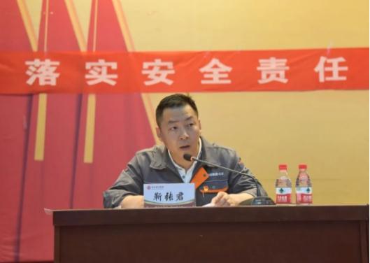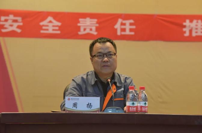 为深入学习贯彻习近平总书记关于安全生产的重要论述,牢固树立安全发展理念,落实集团公司“安全生产月”会议精神,扎实推进安全生产专项整治三年行动集中攻坚,大力营造安全稳定的生产环境,6月1日上午,文丰公司在文化中心礼堂召开2021年度安全生产月启动大会。会议特邀市科工局行业主管局长赵子全出席,集团安全副总裁周扬,文丰公司总经理刘文波、总经理助理张彦斌、安全处长靳张君及各职能部门负责人、各分厂科段长以上管理人员和员工代表共计400余人参加了本次大会。会议由安全处长靳张君主持。